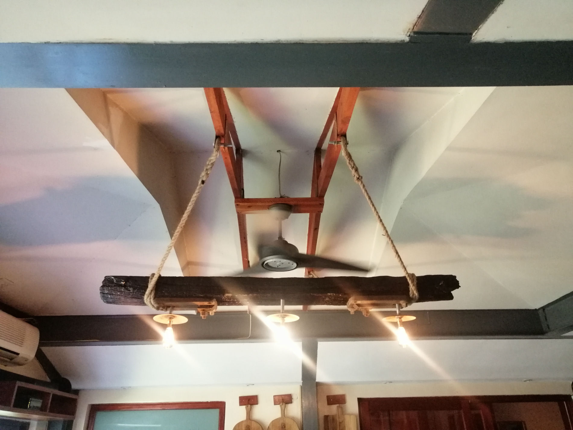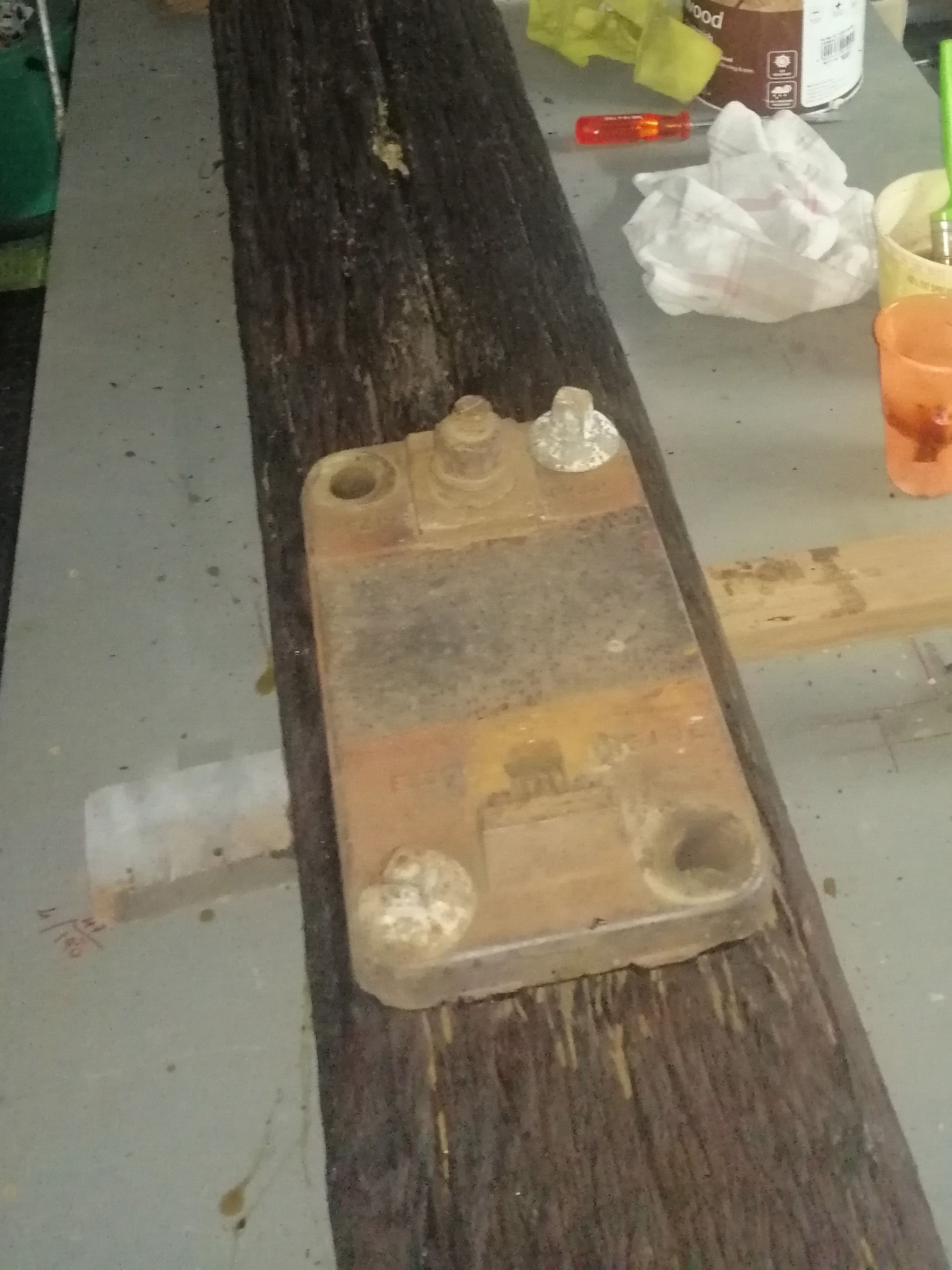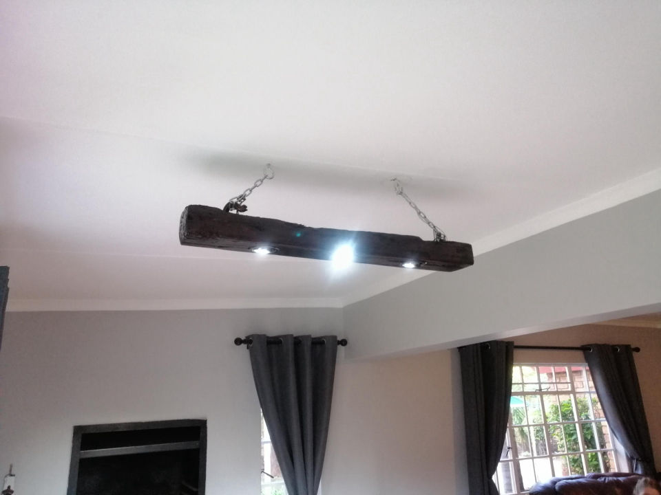 1.2m recovered mine sleeper fitted with downlight fittings. Light fittings, globe types, power supply and hanger type can be customised